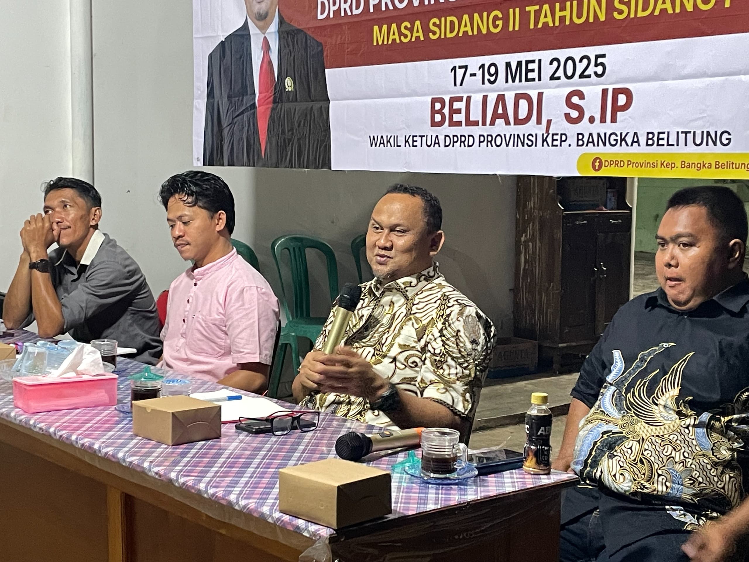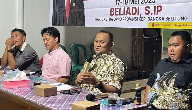 Badau – Wakil Ketua DPRD Provinsi Kepulauan Bangka Belitung, Beliadi menggelar kegiatan reses yang bertempat di kantor Desa Air Batu Buding, Kecamatan Badau, Kabupaten Belitung, Sabtu (17/05/2025).