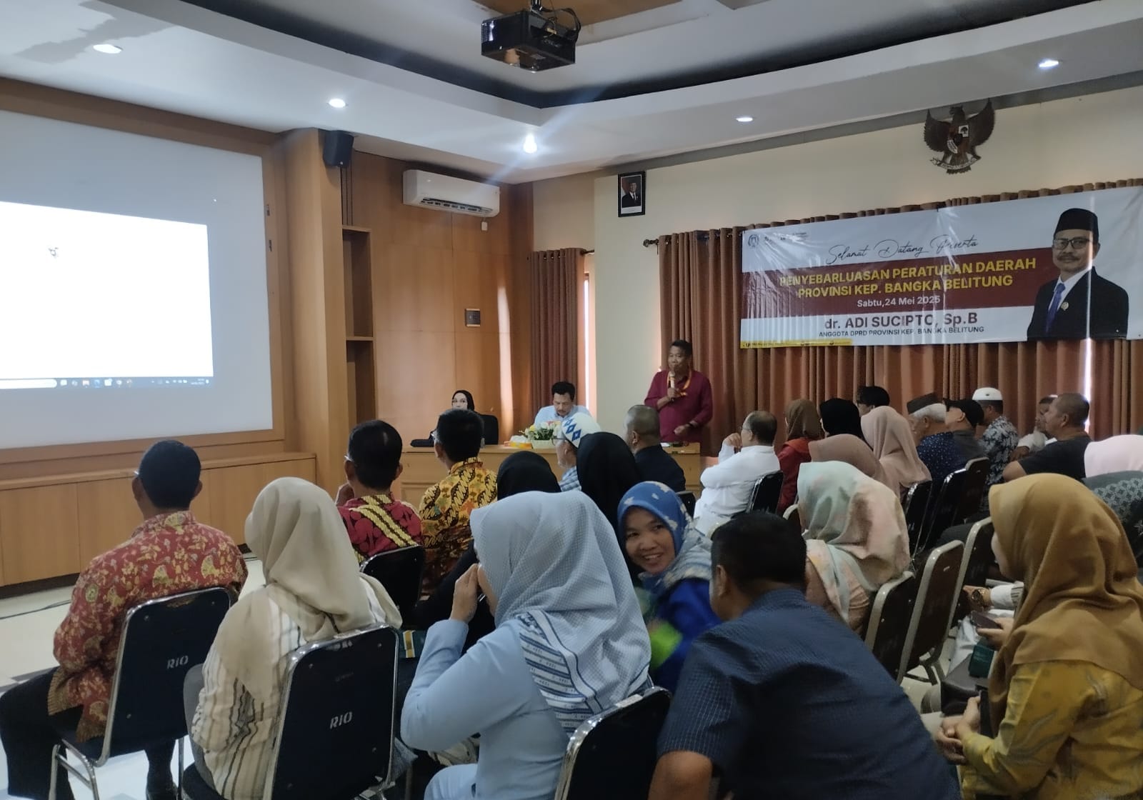 PANGKALPINANG — Anggota DPRD Provinsi Kepulauan Bangka Belitung Adi Sucipto menggelar kegiatan Penyebarluasa Peraturan Daerah (Perda) kepada masyarakat Pangkalpinang pada Sabtu pagi (24/5/2025), bertempat di Ruang Pertemuan Gedung Lama RSBT Pangkalpinang.