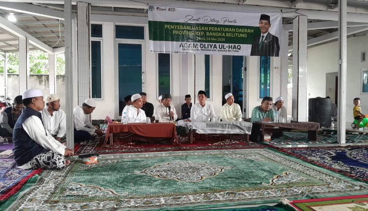 PEMALI – Anggota DPRD Provinsi Kepulauan Bangka Belitung dari Komisi IV, Agam Dliya Ul-Haq melaksanakan Penyebarluasan Peraturan Daerah (Perda) Nomor 02 Tahun 2022 tentang Fasilitasi Penyelenggaraan Pesantren.