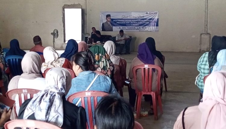 PANGKALAN BARU – Anggota DPRD Provinsi Kepulauan Bangka Belitung, Zeki Yamani menggelar kegiatan Penyebarluasan Peraturan Daerah (Perda) Nomor 07 Tahun 2014 tentang Pengelolaan Pertambangan Mineral. Kegiatan ini berlangsung pada Sabtu siang, pukul 13.00 WIB, di Gedung Eks Angel Wings, Jalan Raya Koba No. 28, Kelurahan Dul, Kecamatan Pangkalan Baru, Kabupaten Bangka Tengah.