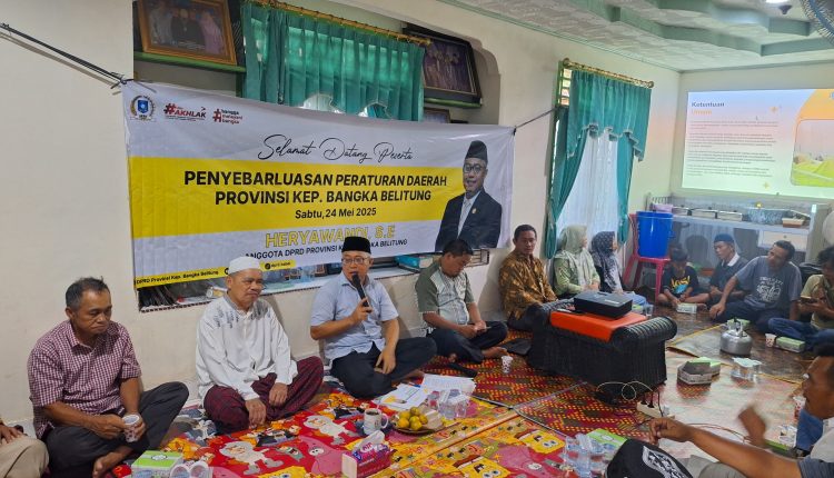 KELAPA – Ketua Komisi IV DPRD Provinsi Kepulauan Bangka Belitung, Heryawandi, melaksanakan kegiatan sosialisasi dua Peraturan Daerah (Perda) penting kepada masyarakat di Kecamatan Kelapa, Kabupaten Bangka Barat, Sabtu (24/5/2025) sore. Kegiatan ini digelar di depan SMPN 1 Kelapa dan mendapat perhatian masyarakat setempat.