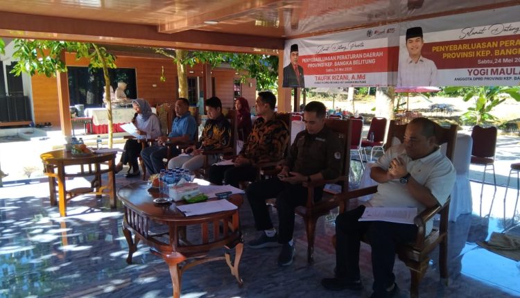 TANJUNGPANDAN – Ketua Komisi III DPRD Kepulauan Bangka Belitung (Babel) Taufik Rizani bersama Anggota DPRD Babel Yogi Maulana menyebarluaskan Peratutan Daerah (Perda) di Pulau Belitong.