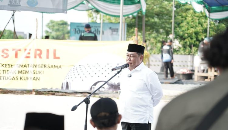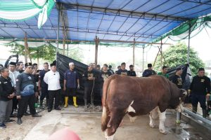 PANGKALPINANG – Peringatan Hari Raya Iduladha 1446 Hijriah di Kota Pangkalpinang turut dimeriahkan dengan penyerahan sapi kurban dari Presiden Republik Indonesia, H. Prabowo Subianto. Hewan kurban tersebut disembelih di Masjid Agung Kubah Timah pada Senin (9/6/2025).