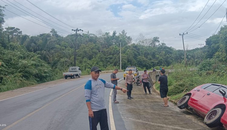 Satuaarahnews. Com- Peristiwa kecelakaan tunggal terjadi di tikungan ruas jalan Desa Nangka Kecamatan Toboali.