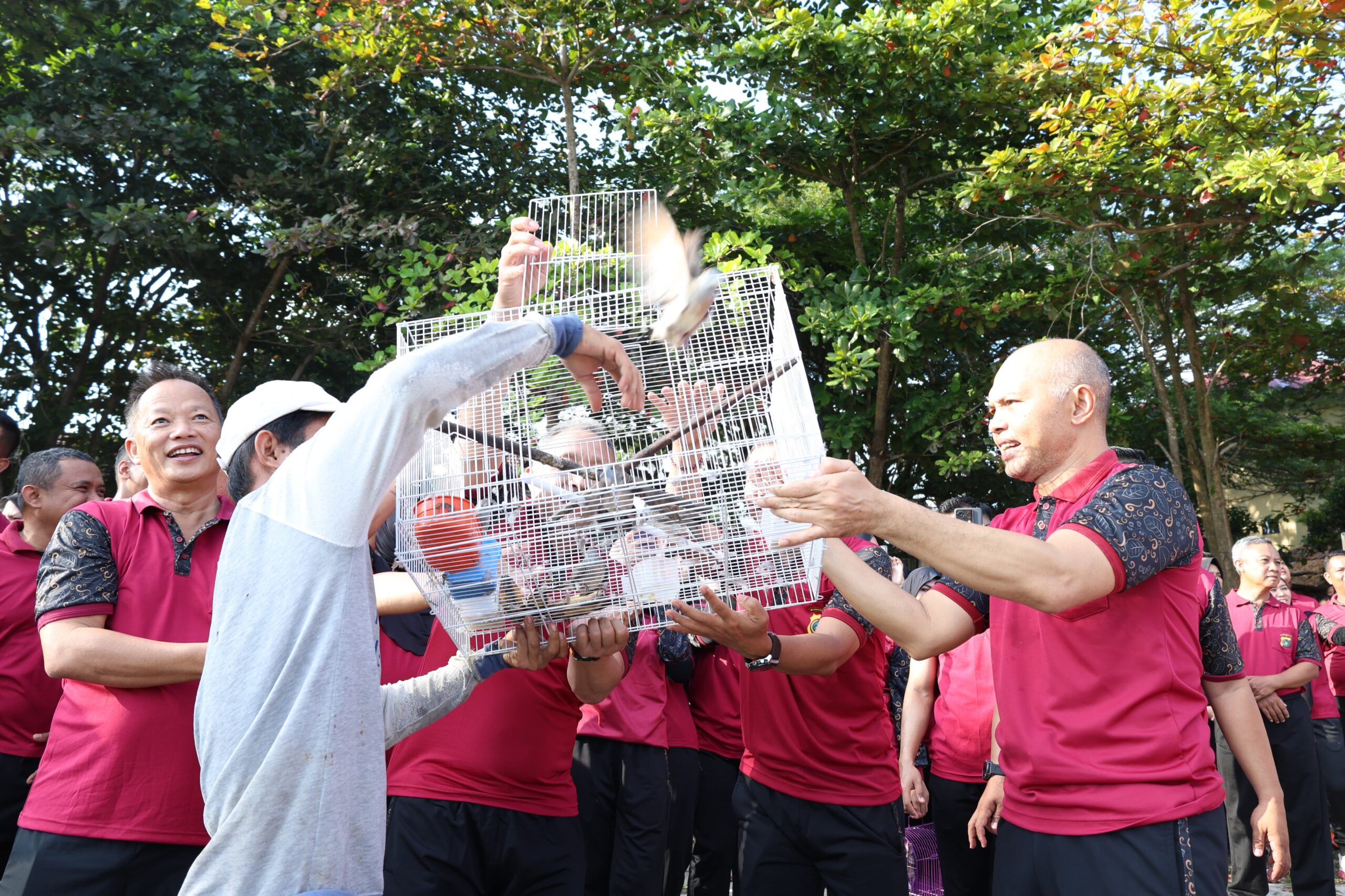 “Ada juga untuk menghidupkan suasana agar lebih terasa di alam bebas dan menjaga kelestarian alam juga maka tadi dilepaskan juga 200 ekor burung,”terangnya.