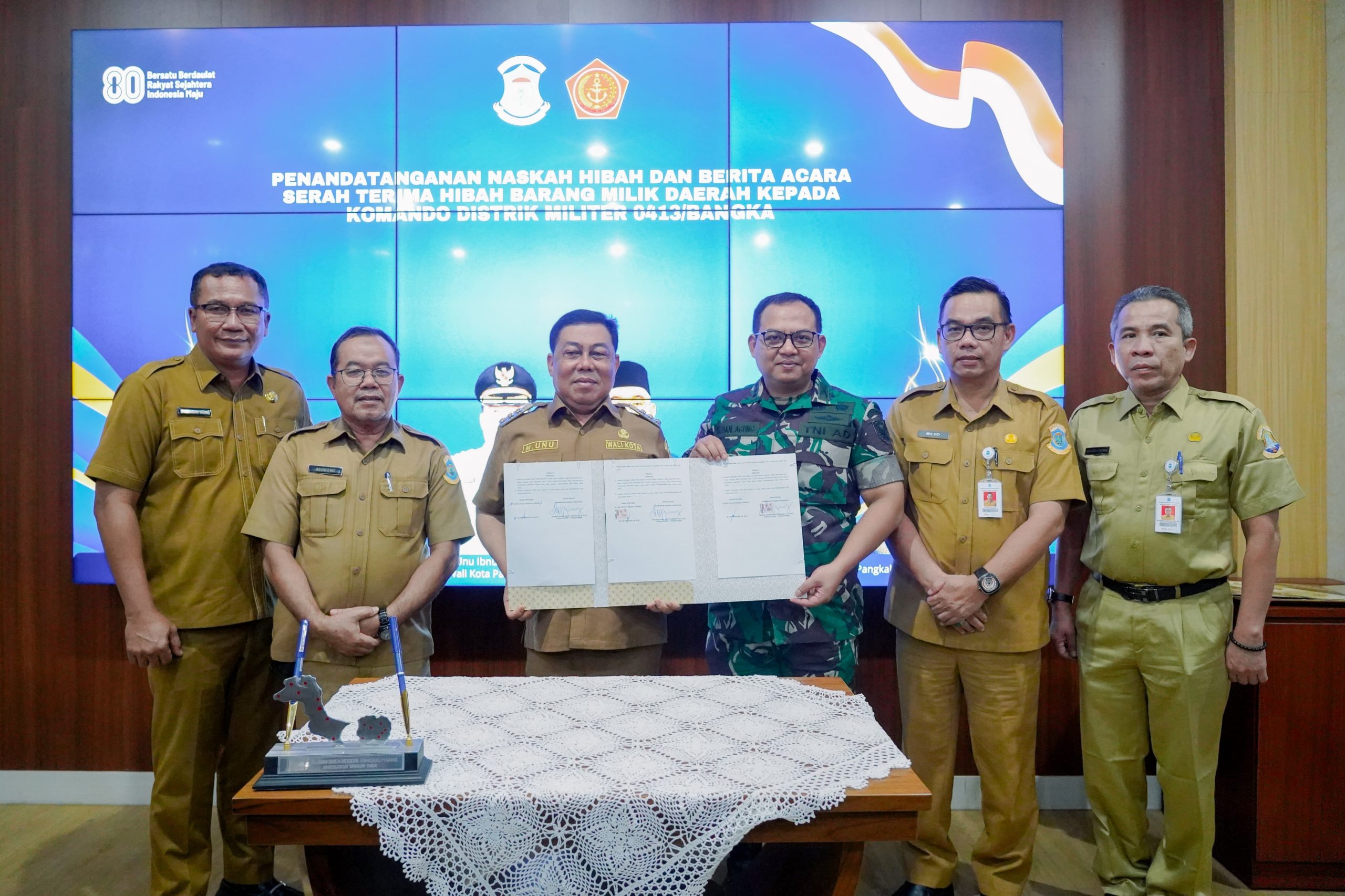 PANGKALPINANG, – Pemerintah Kota Pangkalpinang menandatangani hibah aset milik daerah kepada Kodim 0413/Bangka, Selasa (5/8/2025), di Smart Room Center Kantor Wali Kota. Kegiatan ini juga dirangkai dengan penandatanganan kerja sama antara Pemkot dan Polresta Pangkalpinang dalam perlindungan perempuan, anak, dan pencegahan perdagangan orang.