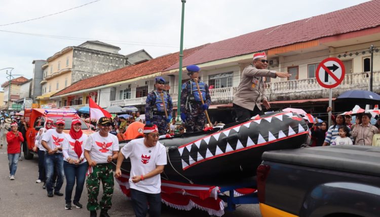 Aksi Tarian Pacu Jalur Hingga Bagi-bagi Bendera Merah Putih Kapolres Basel Warnai Semarak Karnaval HUT Ke 80 RI