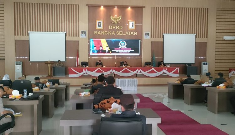 SATUARAHNEWS- Dewan Perwakilan Rakyat Daerah (DPRD) Bangka Selatan (Basel) menggelar paripurna tentang penyampaian Rancangan Peraturan Daerah Tentang APBD Tahun Anggaran 2025, di gedung Junjung Besaoh DPRD Basel, Perkantoran Pemkab Basel, Senin (25/08).