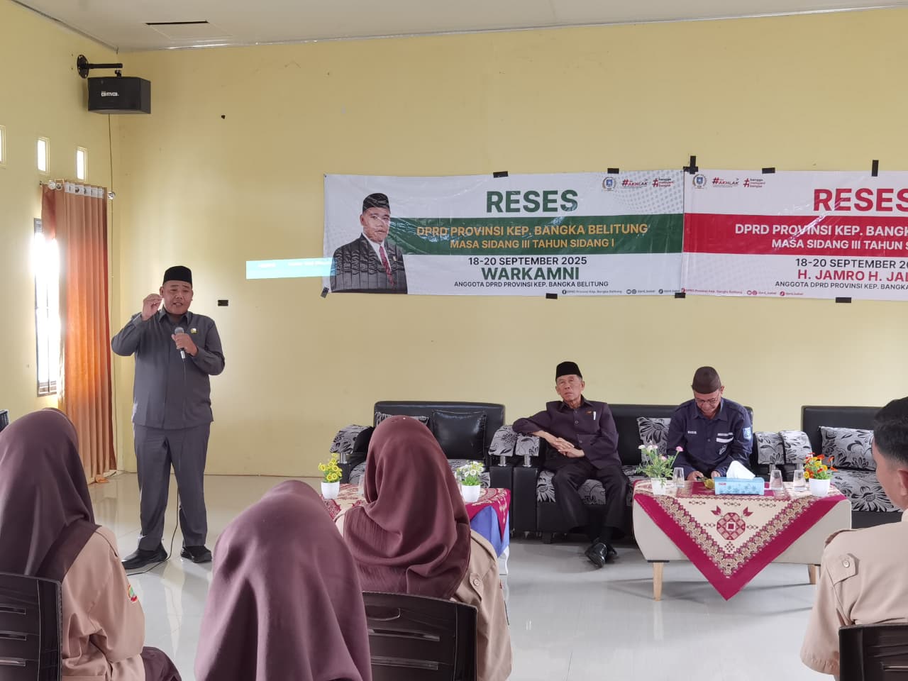 SIMPANG RIMBA – Duet anggota DPRD Provinsi Kepulauan Bangka Belitung (Babel), H. Jamro H. Jalil dan Warkamni kunjungi SMA Negeri 1 Simpang Rimba sebagai tempat pertama dalam kegiatan Resesnya kali ini, Kamis (18/09/25). Momen tersebut dimanfaatkan kedua anggota DPRD Provinsi Kep. Babel itu untuk menjaring aspirasi generasi muda dan tenaga pendidik.