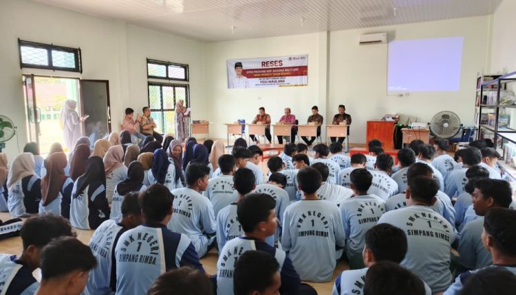 BANGKA SELATAN – Anggota DPRD Provinsi Kepulauan Bangka Belitung (Babel), Yogi Maulana melaksanakan kegiatan Reses Masa Sidang III Tahun Sidang I di SMK Negeri 1 Simpang Rimba, Kabupaten Bangka Selatan, Kamis (18/9/2025).