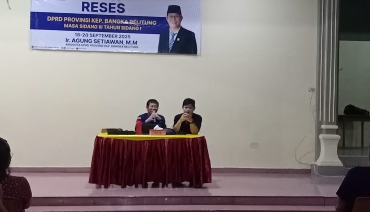 SUNGAILIAT – Anggota DPRD Provinsi Kepulauan Bangka Belitung (Babel), Agung Setiawan, menegaskan komitmennya untuk menampung semua aspirasi masyarakat. Pernyataan ini disampaikan saat agenda reses bersama warga di Kelekak Bunda, Kenanga, Kabupaten Bangka, Kamis malam (18/09/2025).