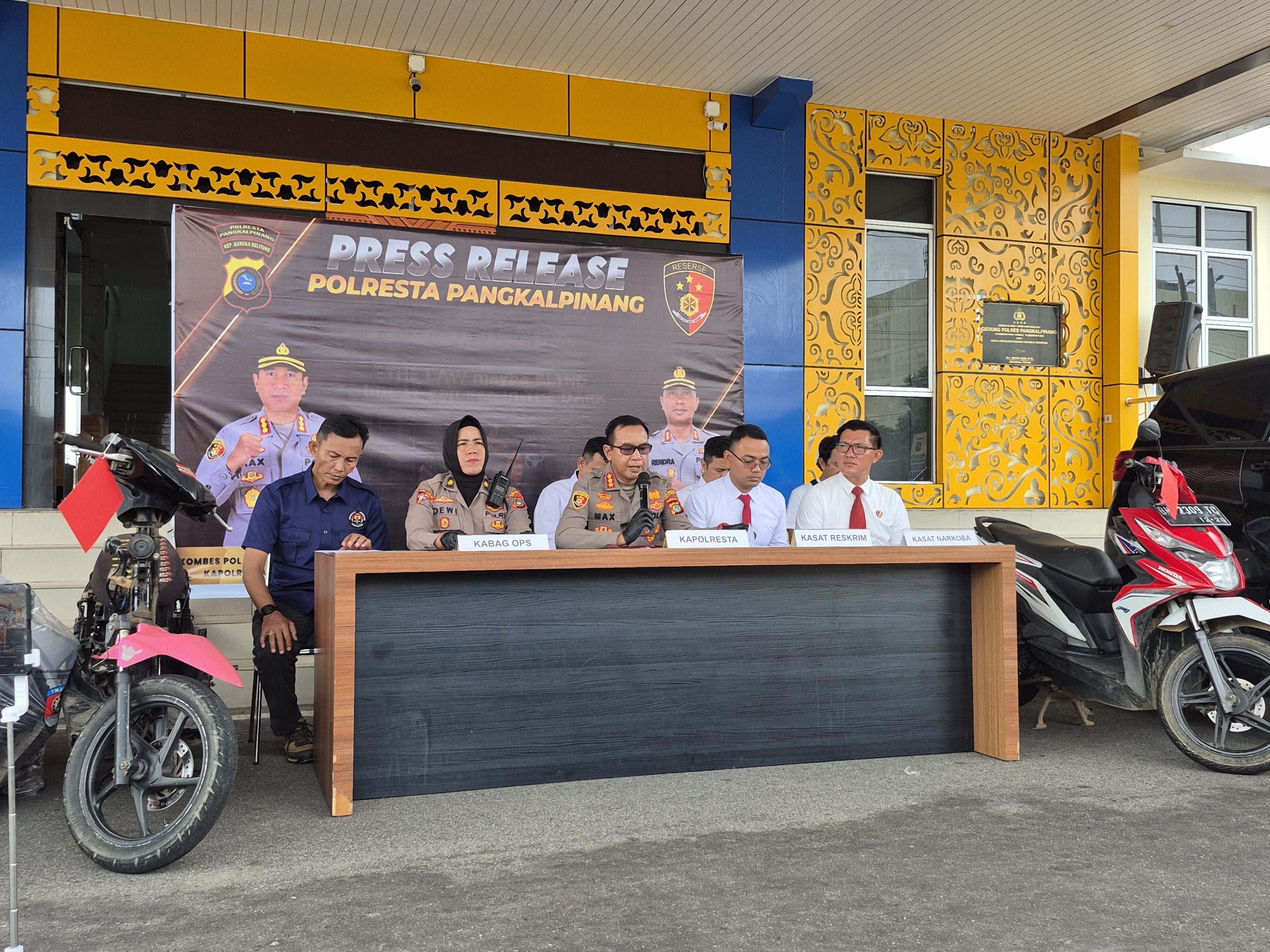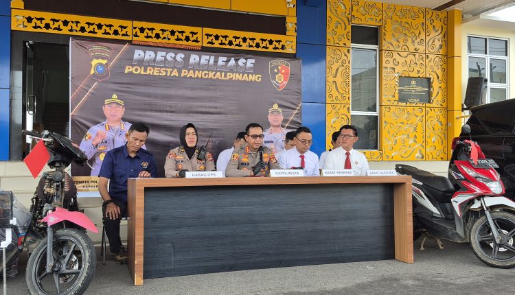 PANGKALPINANG – Jajaran Satuan Reserse Kriminal (Satreskrim) Polresta Pangkalpinang melalui Tim Buser Naga berhasil mengungkap dua kasus pencurian kendaraan bermotor (curanmor) yang meresahkan masyarakat. Dari pengungkapan tersebut, polisi mengamankan empat orang tersangka dari dua laporan polisi yang berbeda.