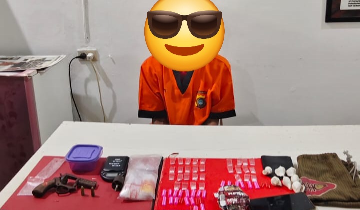 Tidak hanya narkotika, polisi juga menemukan satu unit senjata api rakitan jenis revolver lengkap dengan dua butir peluru.