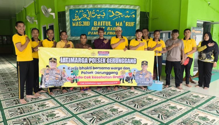 Dalam kegiatan tersebut, personel Polsek Gerunggang dan warga bergotong royong membersihkan area dalam dan sekitar masjid. Seluruh rangkaian kegiatan berjalan dengan aman, tertib, dan kondusif tanpa kendala berarti.