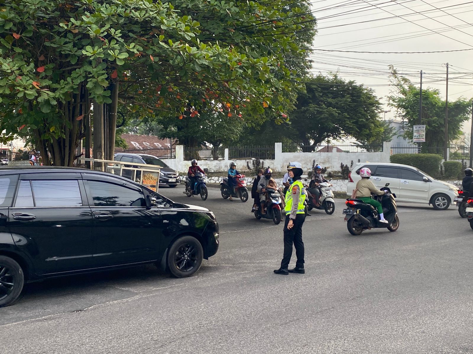 “Kami hadir langsung di lapangan untuk memastikan arus lalu lintas tetap lancar, tertib, dan aman bagi seluruh pengguna jalan,” ungkap Kompol Ria.