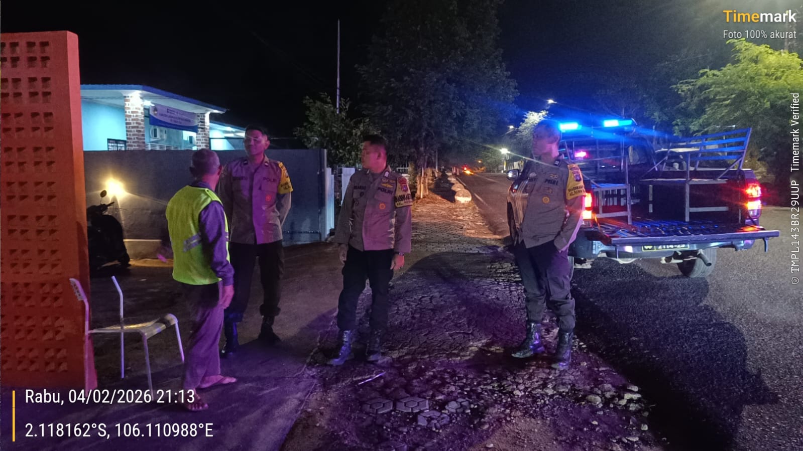 PANGKALPINANG — Dalam rangka menjaga situasi kamtibmas tetap aman dan kondusif, personel piket bersama Bhabinkamtibmas Polsek Taman Sari melaksanakan kegiatan patroli 5 waktu di wilayah hukumnya. Patroli ini difokuskan pada kawasan pemukiman warga dan perumahan guna mencegah potensi gangguan keamanan serta memberikan rasa aman kepada masyarakat.