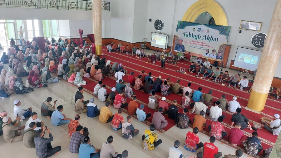 “Di usia Kabupaten Bangka Selatan yang ke-23 ini, kita ingin pembangunan tidak hanya terlihat secara fisik, tetapi juga tercermin dari akhlak dan keimanan masyarakatnya. Semoga melalui Tabligh Akbar ini, kita semua semakin meningkatkan ketakwaan kepada Allah Swt. dan mempererat persatuan dalam membangun Bangka Selatan yang maju dan bermartabat,” ujar Riza Herdavid.