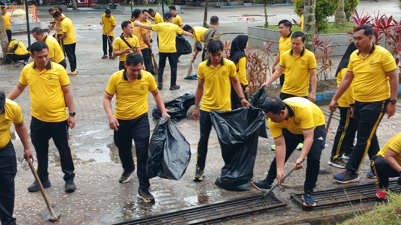 Respon Cepat Instruksi Presiden, Polda Babel Gelar Aksi Bersih di Alun-Alun Taman Merdeka Pangkalpinang