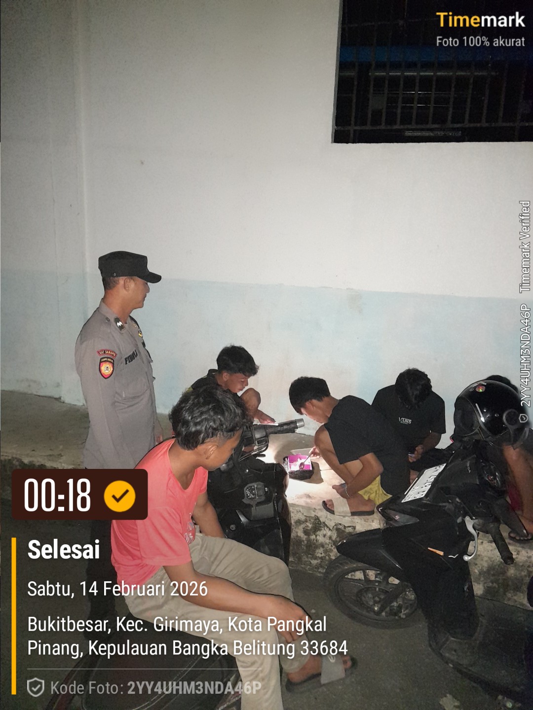 PANGKALPINANG — Guna menjaga situasi keamanan dan ketertiban masyarakat (Kamtibmas), jajaran Polsek Bukit Intan, Polresta Pangkalpinang melaksanakan patroli dialogis pada Sabtu (14/2/2026) dini hari. Patroli dilakukan mulai pukul 00.00 WIB dengan menyasar sejumlah titik yang dianggap rawan gangguan keamanan di wilayah Girimaya, Kota Pangkalpinang.