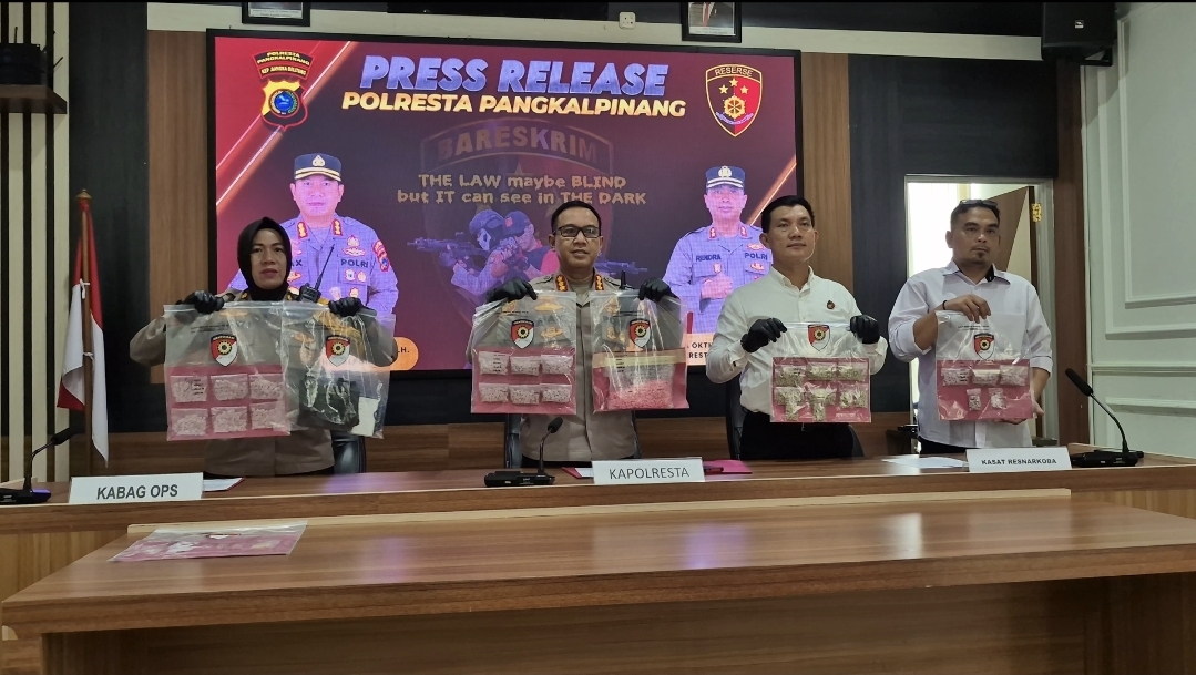 Kapolresta Pangkalpinang, Max Mariners, melalui keterangan yang disampaikan kepada wartawan mengatakan bahwa tersangka diketahui merupakan residivis kasus narkotika dan berperan sebagai perantara peredaran barang haram tersebut.